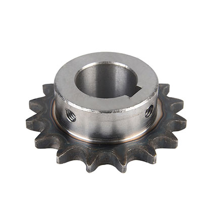 A roller sprocket is a gear used with a roller chain to transmit mechanical power. The teeth of the sprocket interlock with the individual chain components. When the sprocket rotates, it pulls the chain and transmits power from the drive end of the system to the driven end.